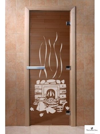 Дверь стеклянная для бани и сауны "Банька" Бронза 8мм Ольха 1900*700