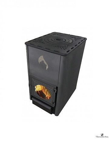 Печь предназначена для обогрева помещений до 120м3. Оснащена чугунной варочной плитой.
